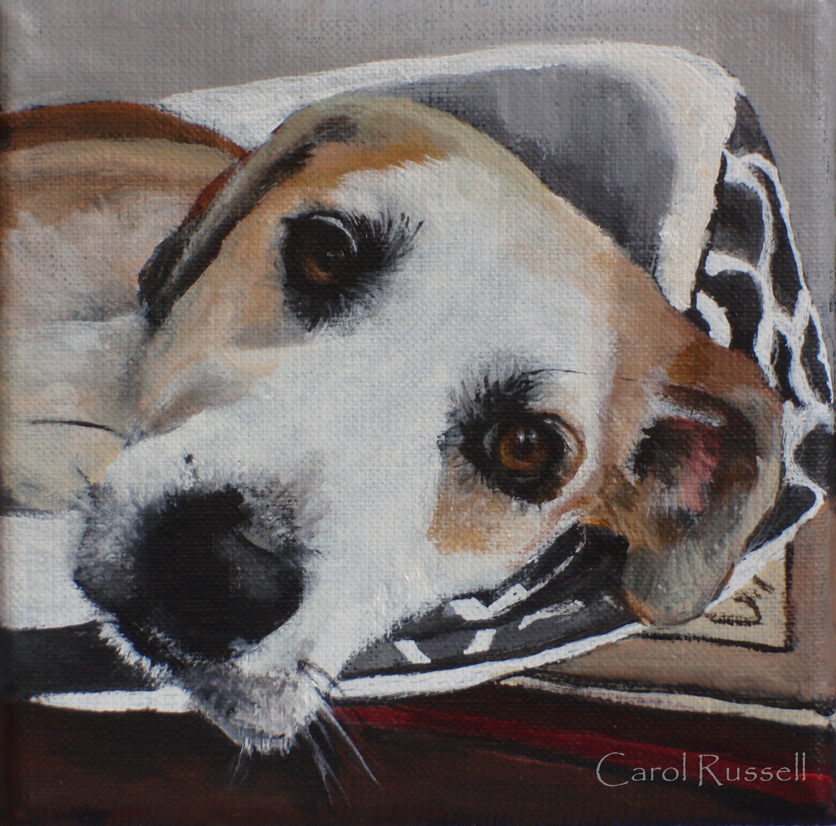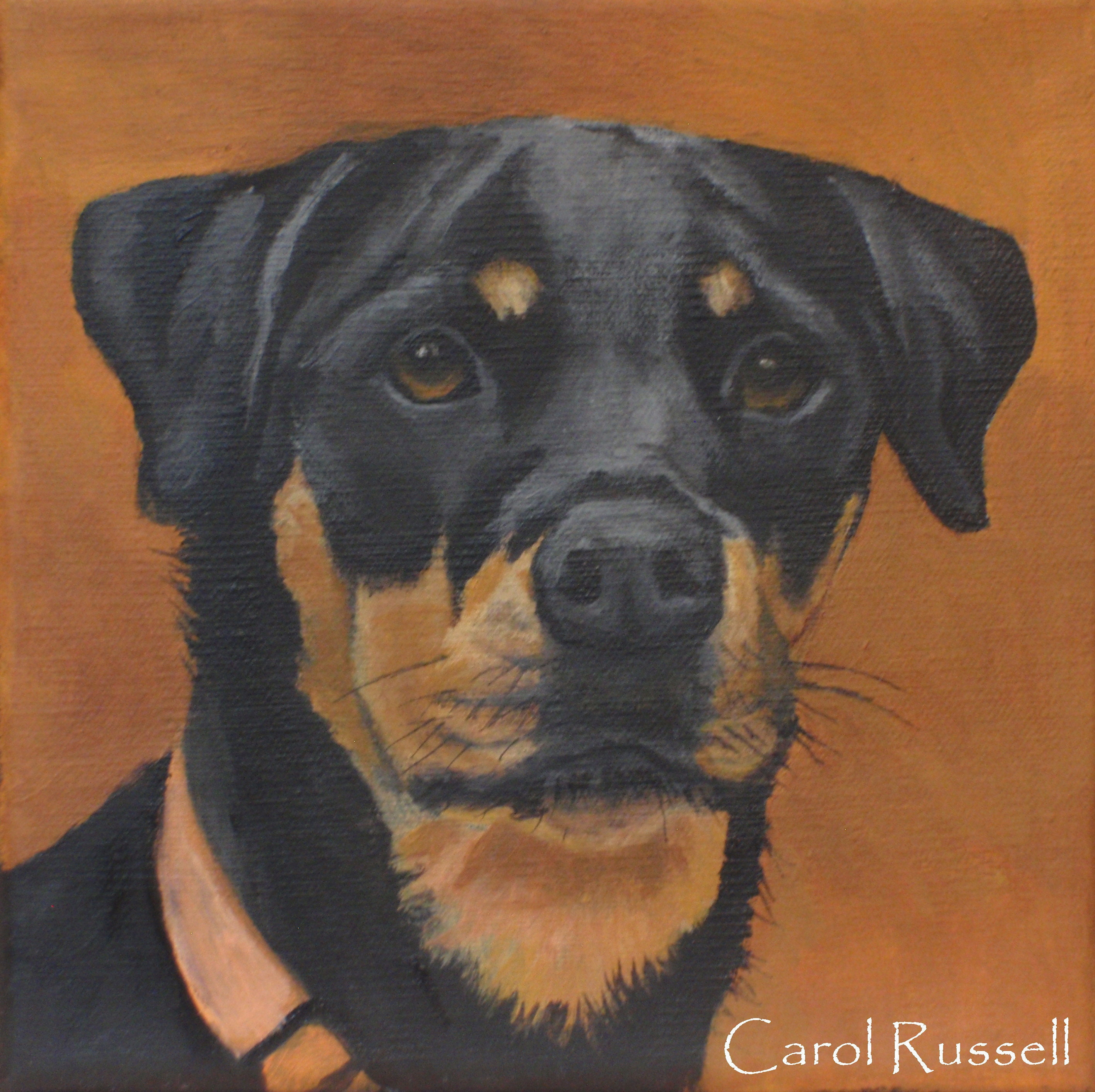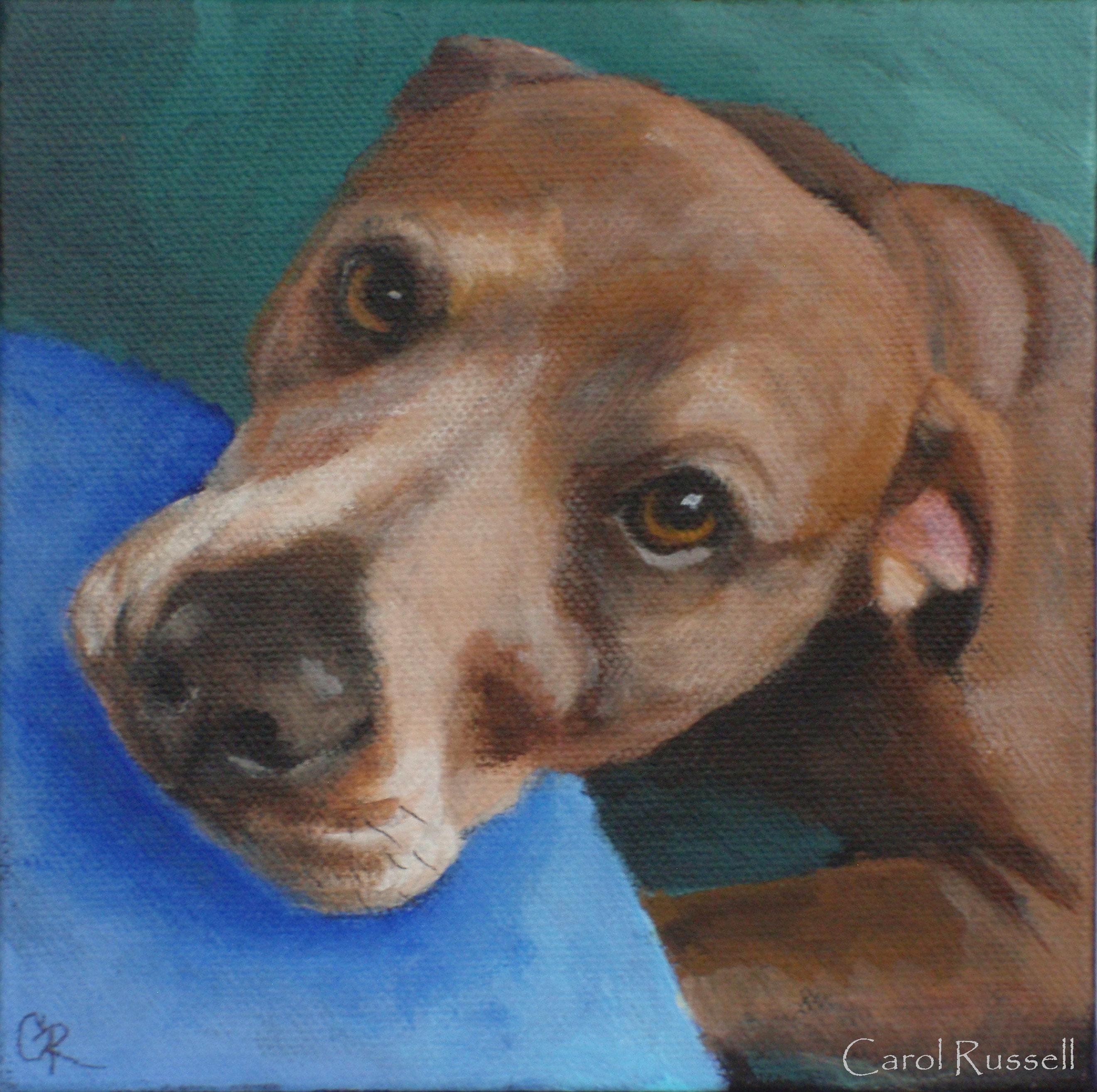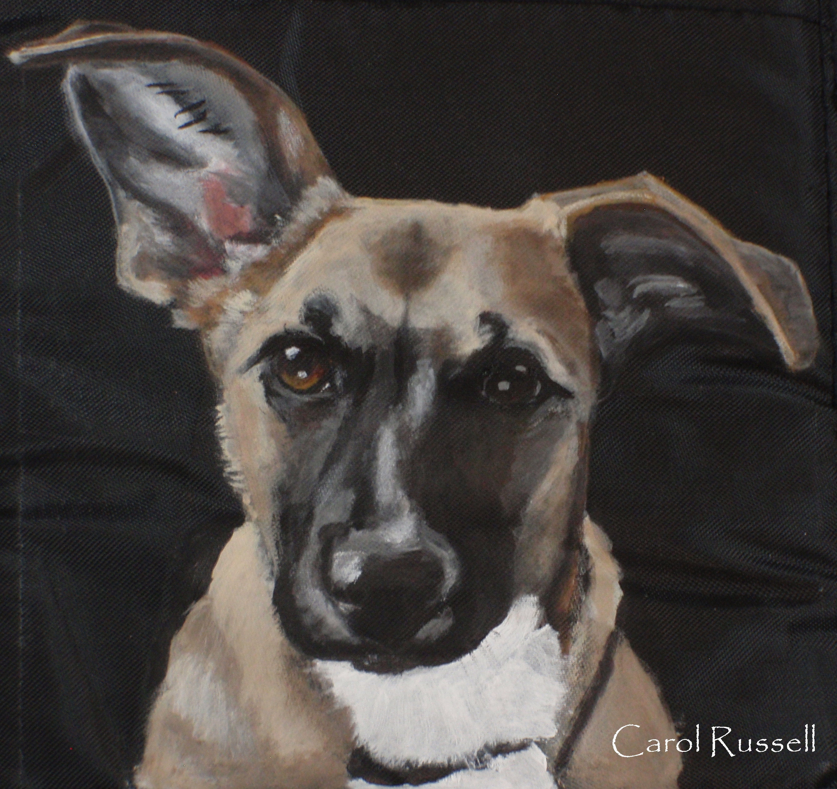 'Bailey' 6"x6" acrylic leather paints on leather.