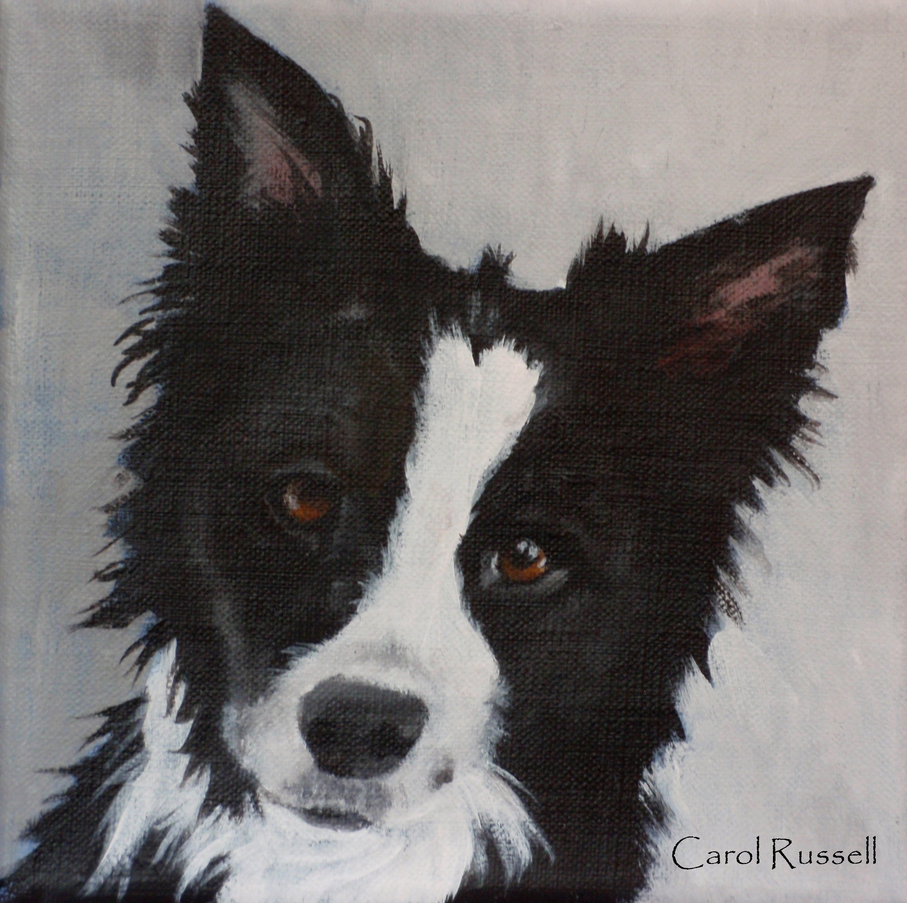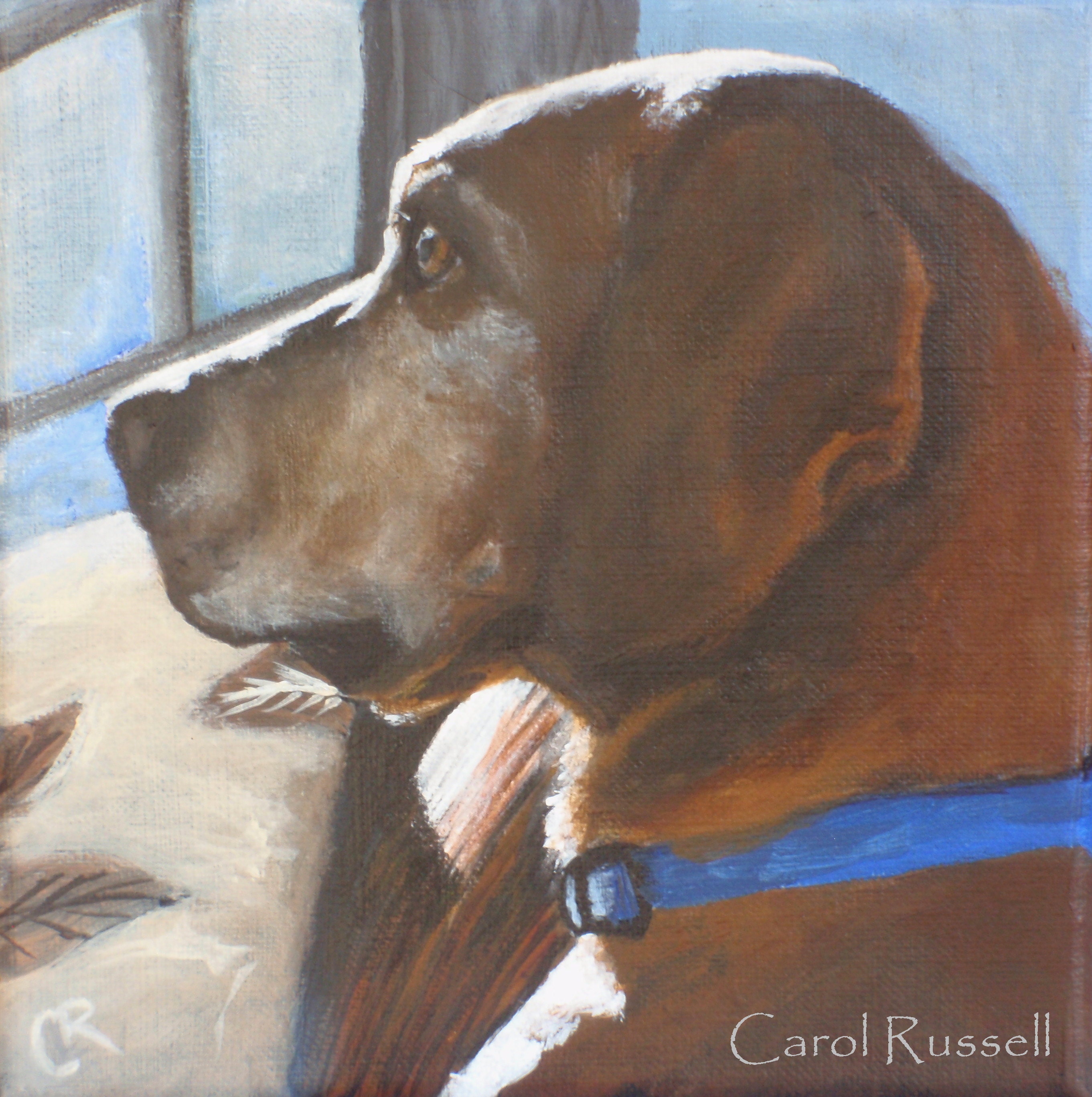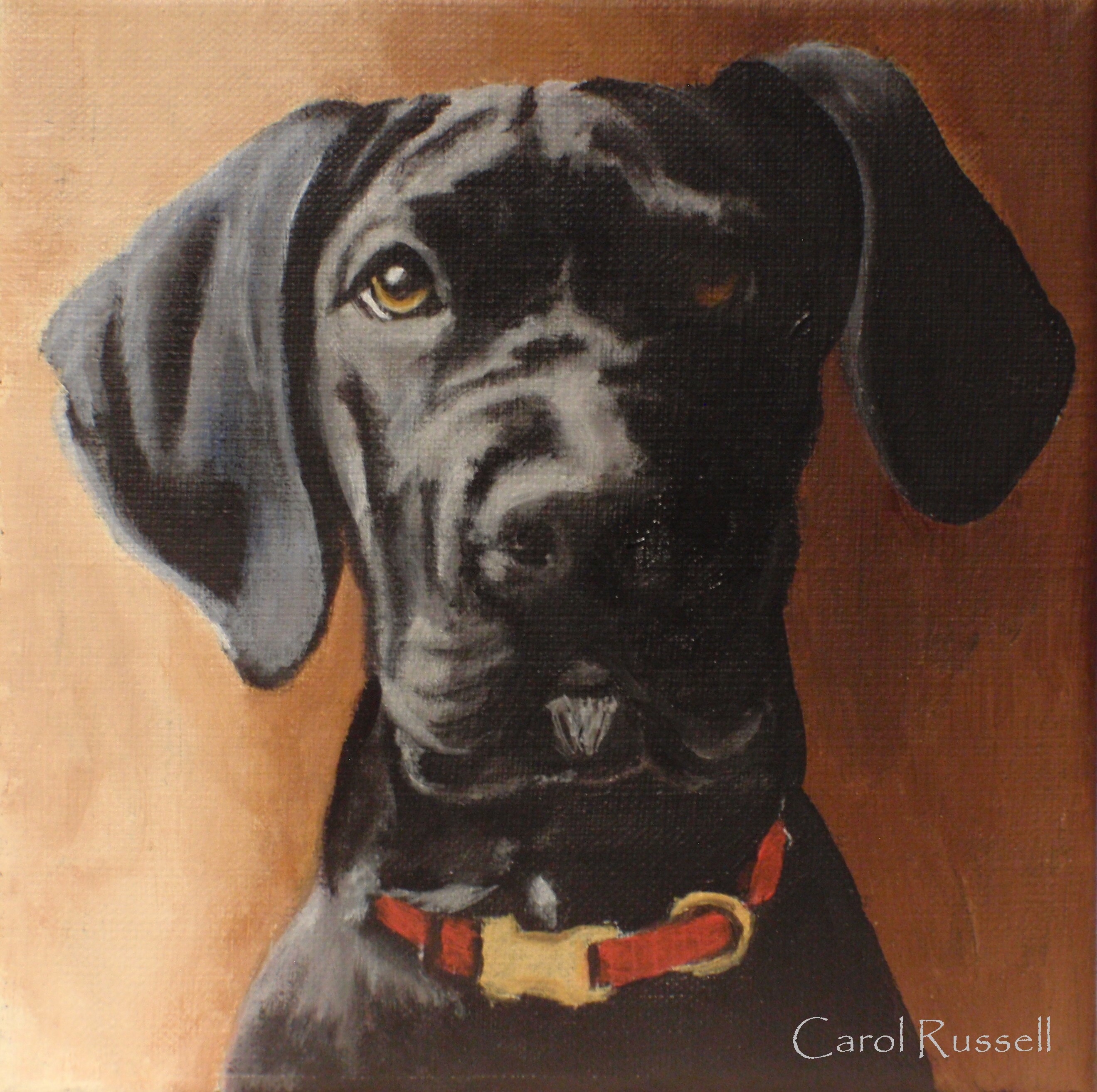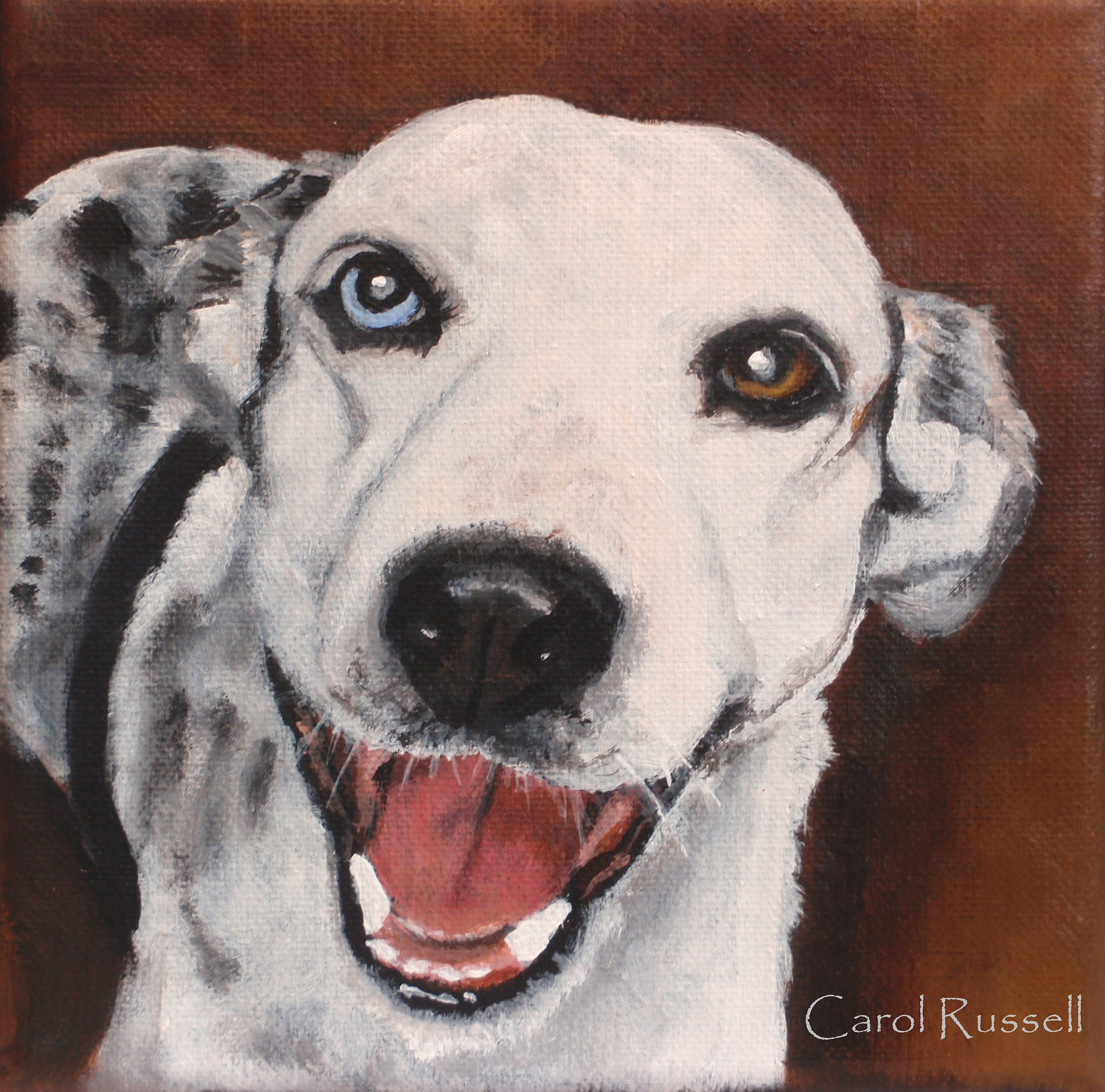 'Bailey' 6"x6" acrylic leather paints on leather.