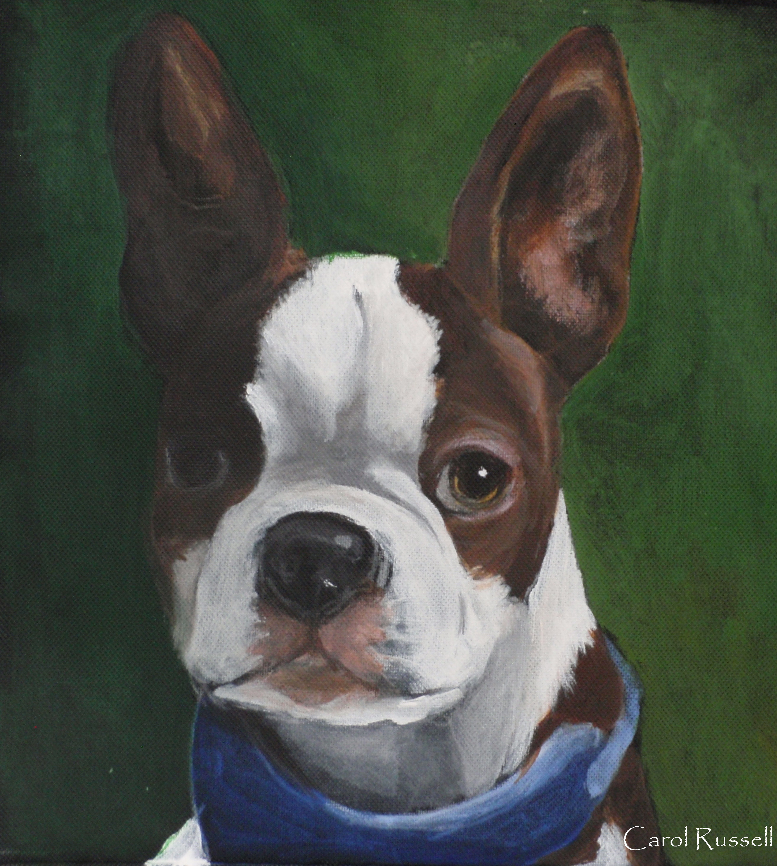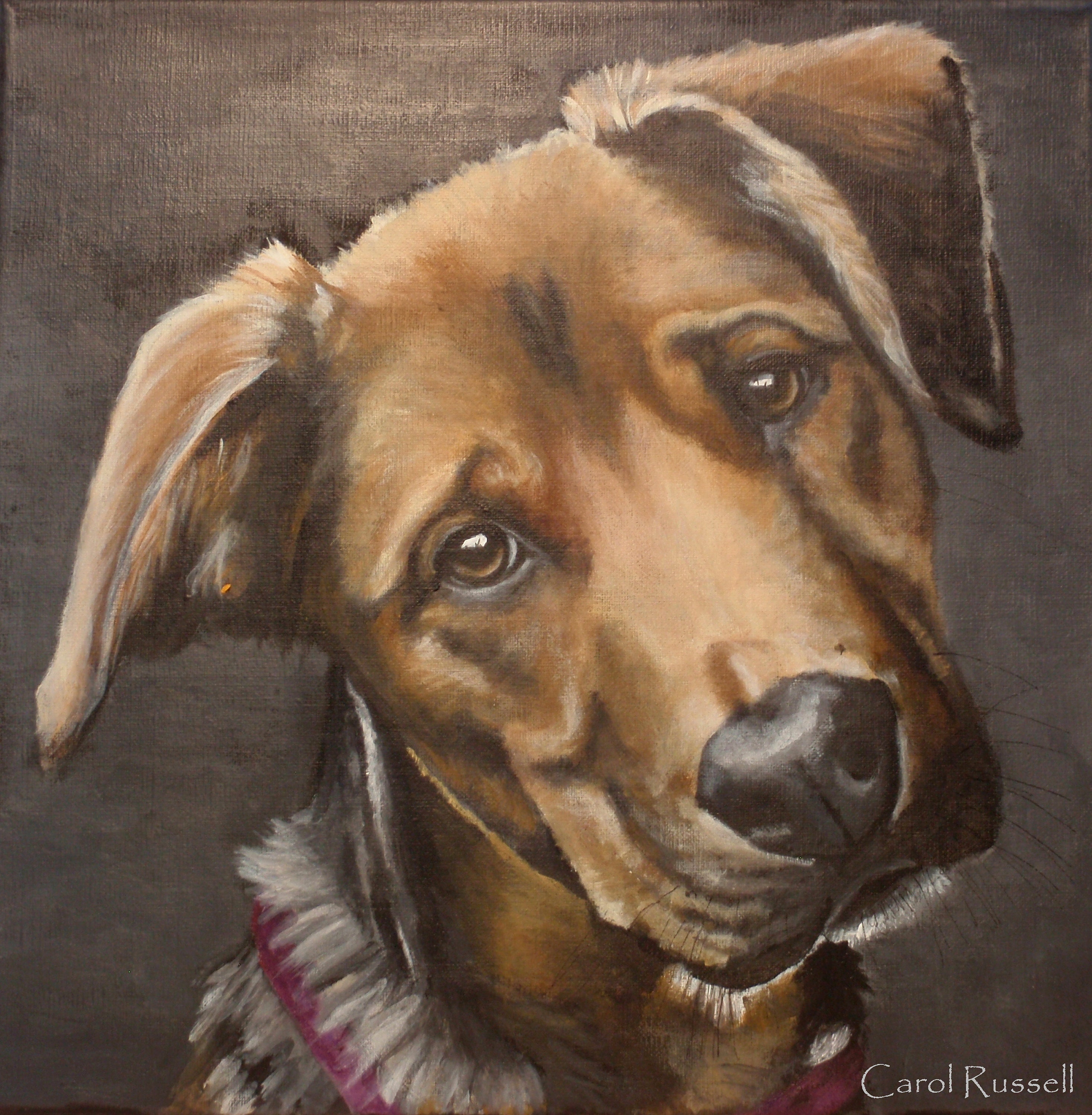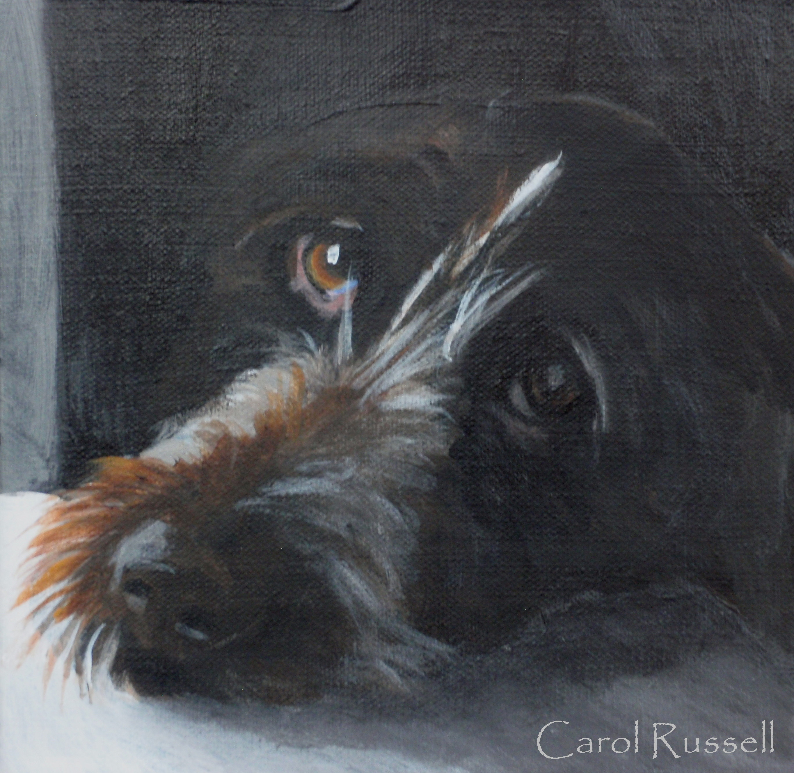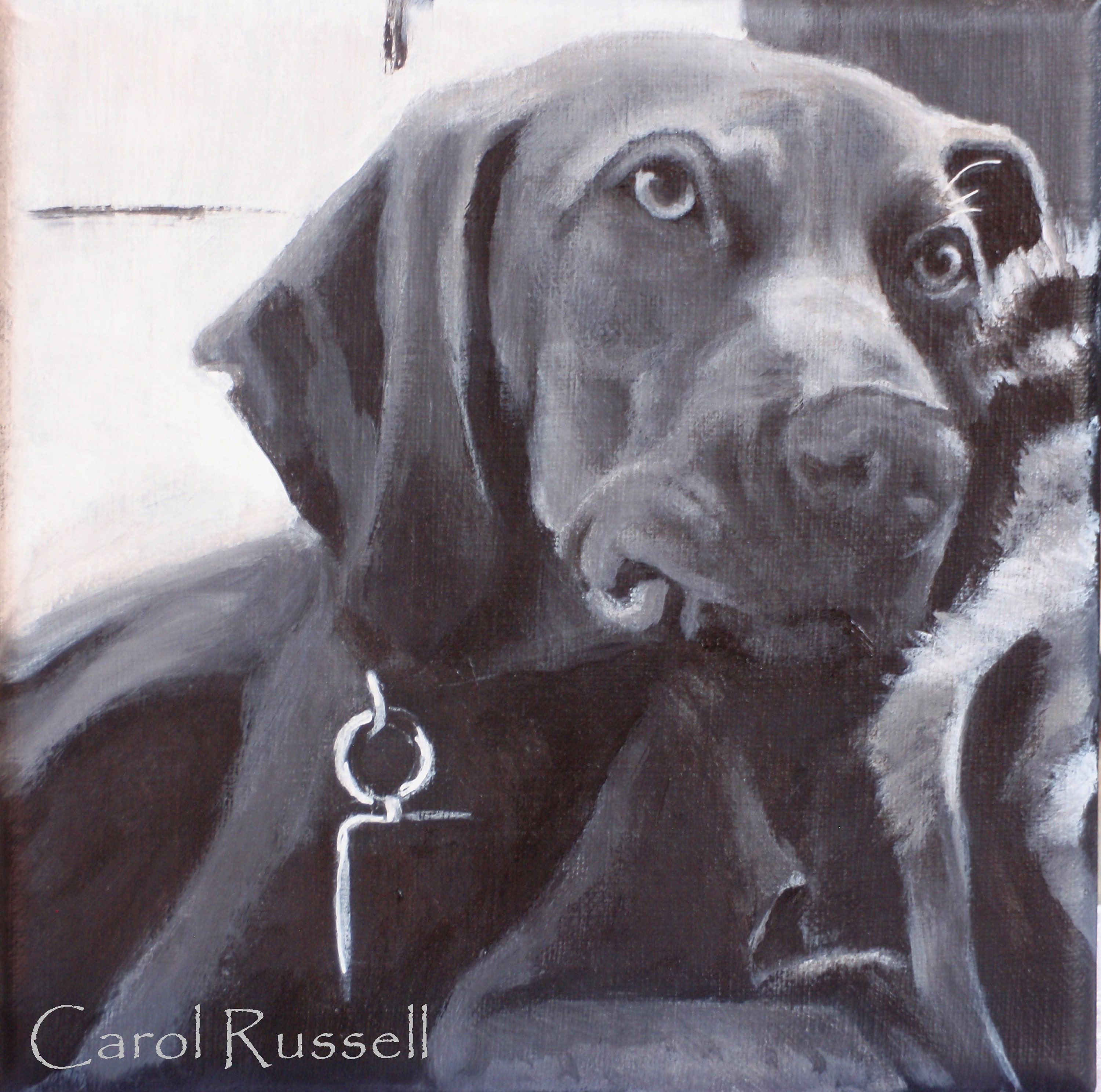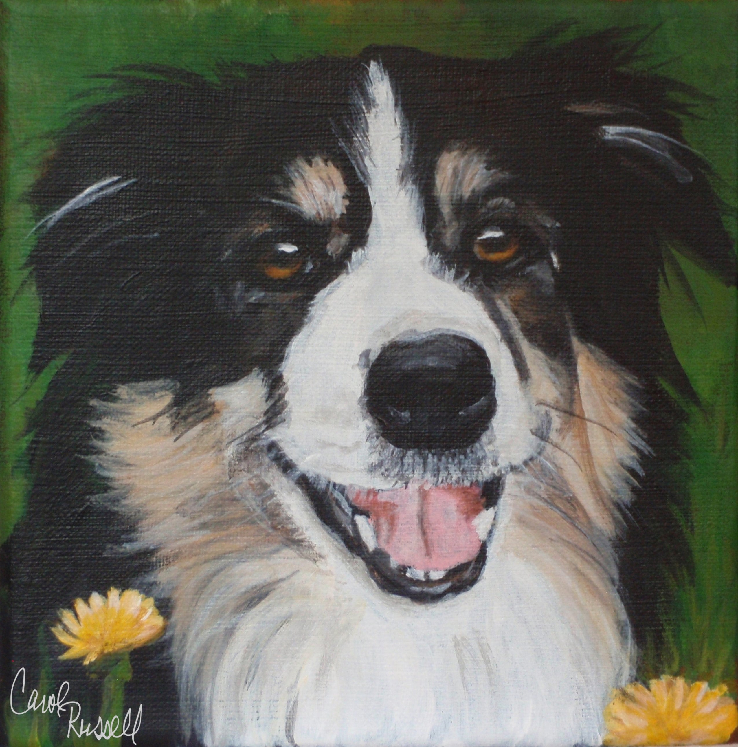 'Bailey' 6"x6" acrylic leather paints on leather.