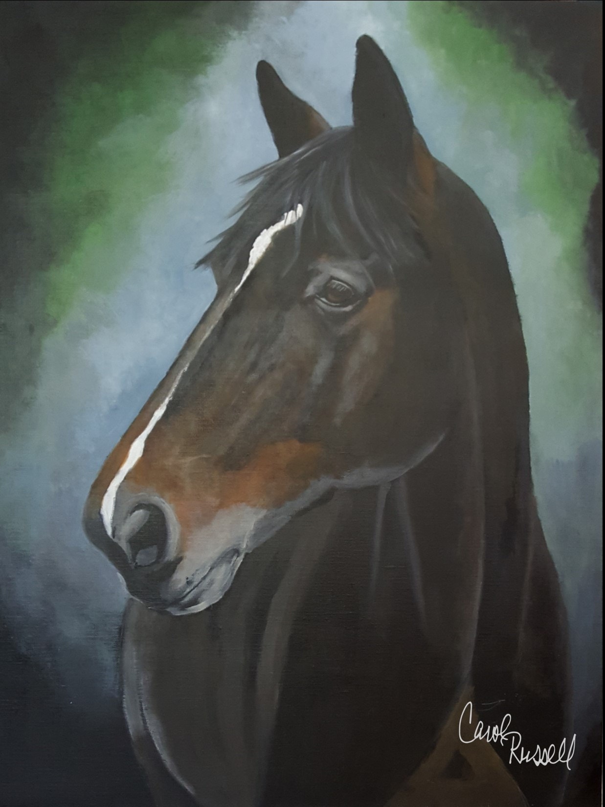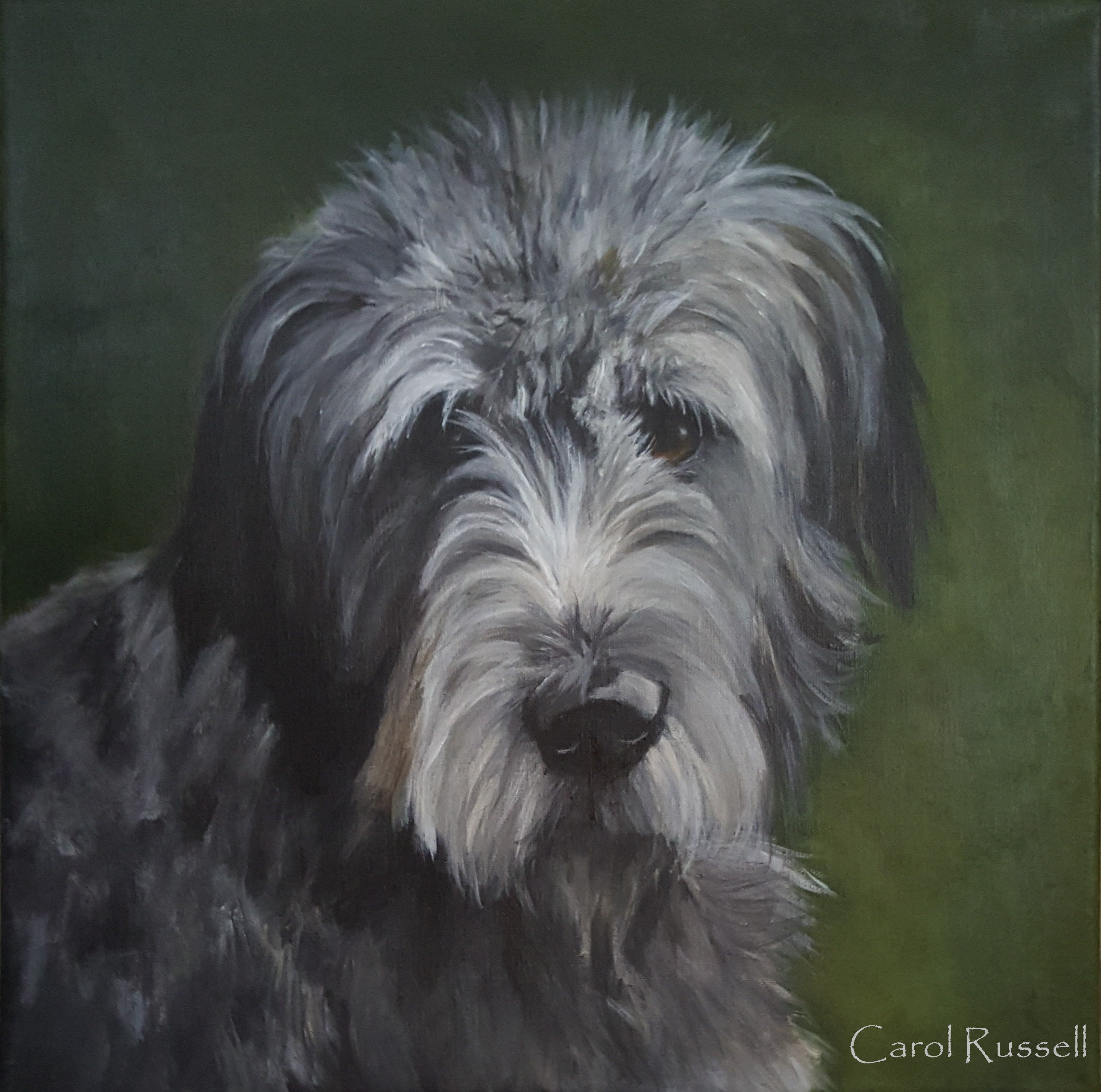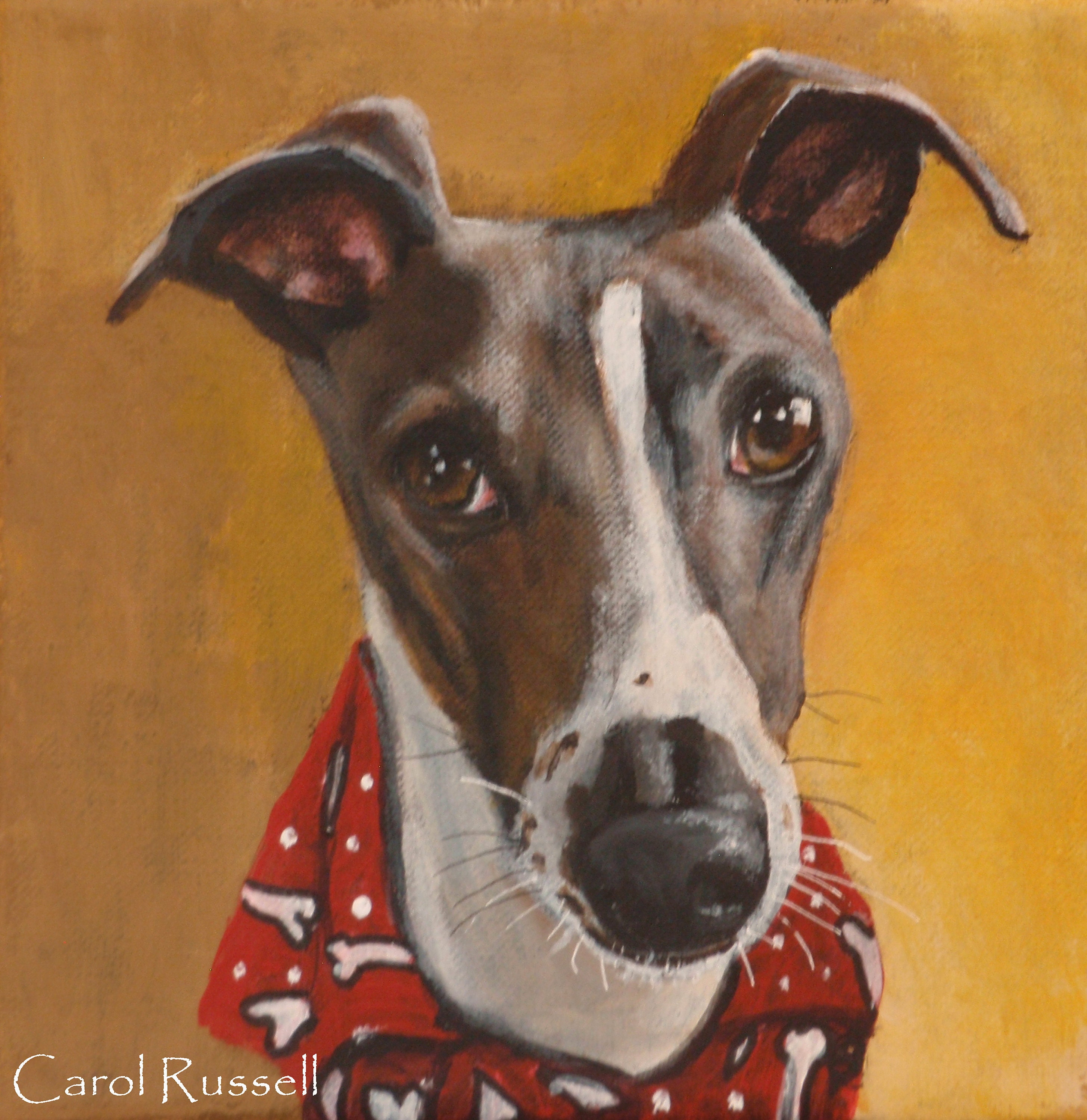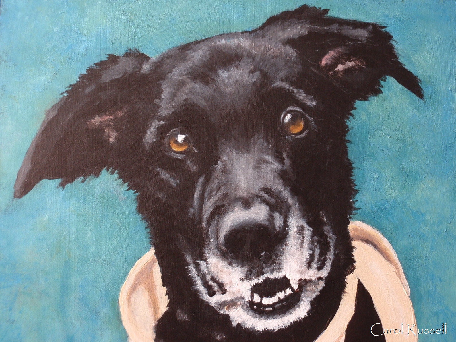 'Bailey' 6"x6" acrylic leather paints on leather.