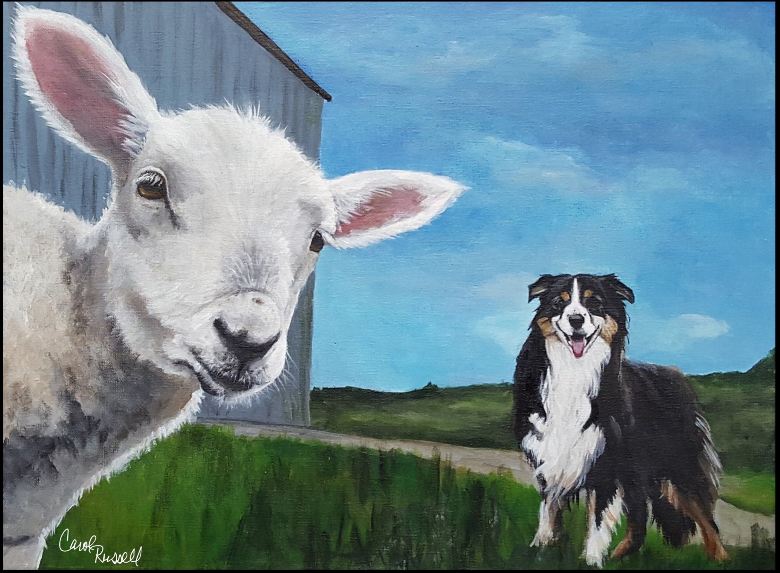 'Duke & Daisy' 12"x16" acrylics on wood panel.