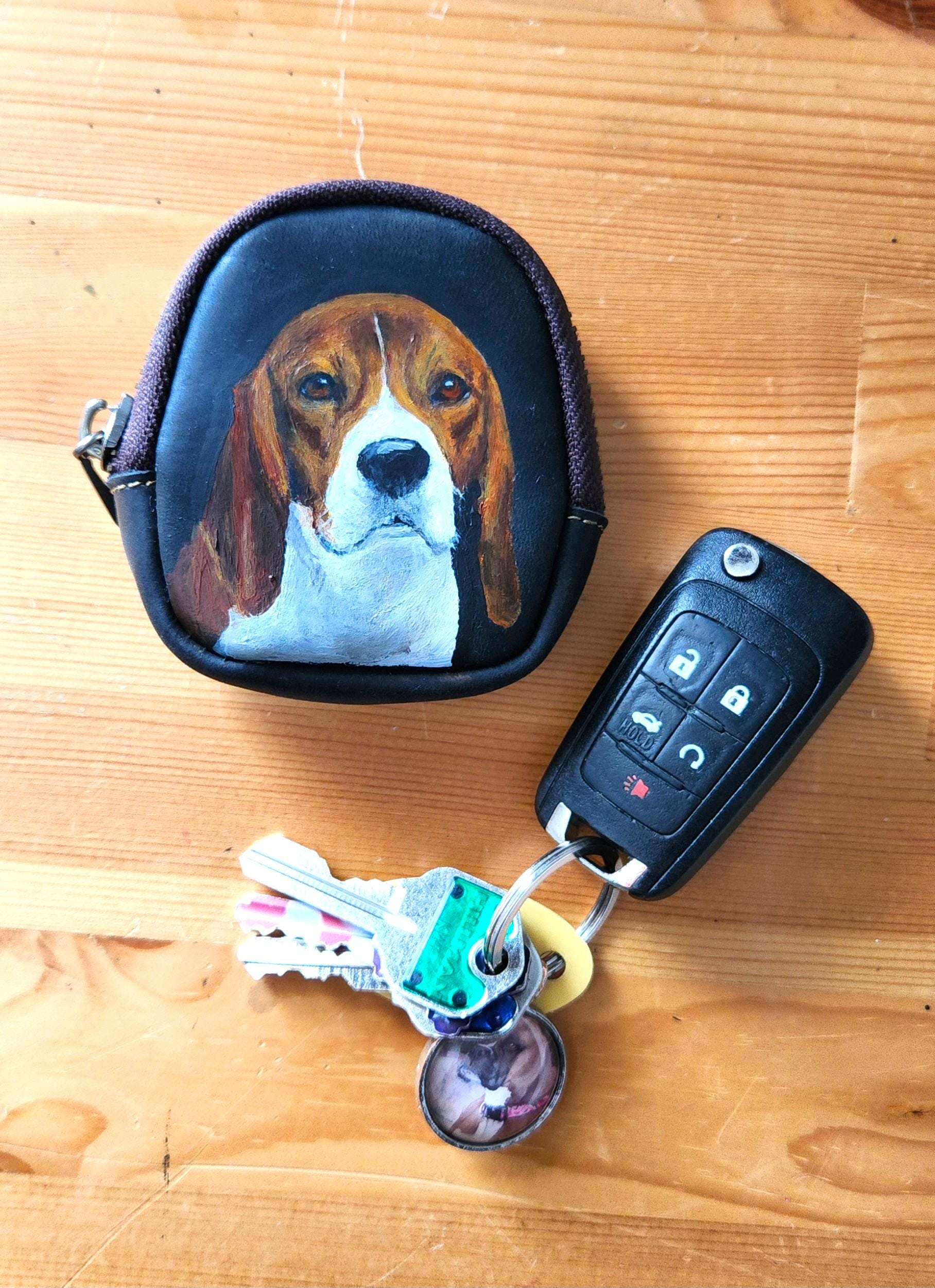 I've painted Bonnie on this pouch. She's painted with leather acrylics and protected with several applications of topcoat for protection.