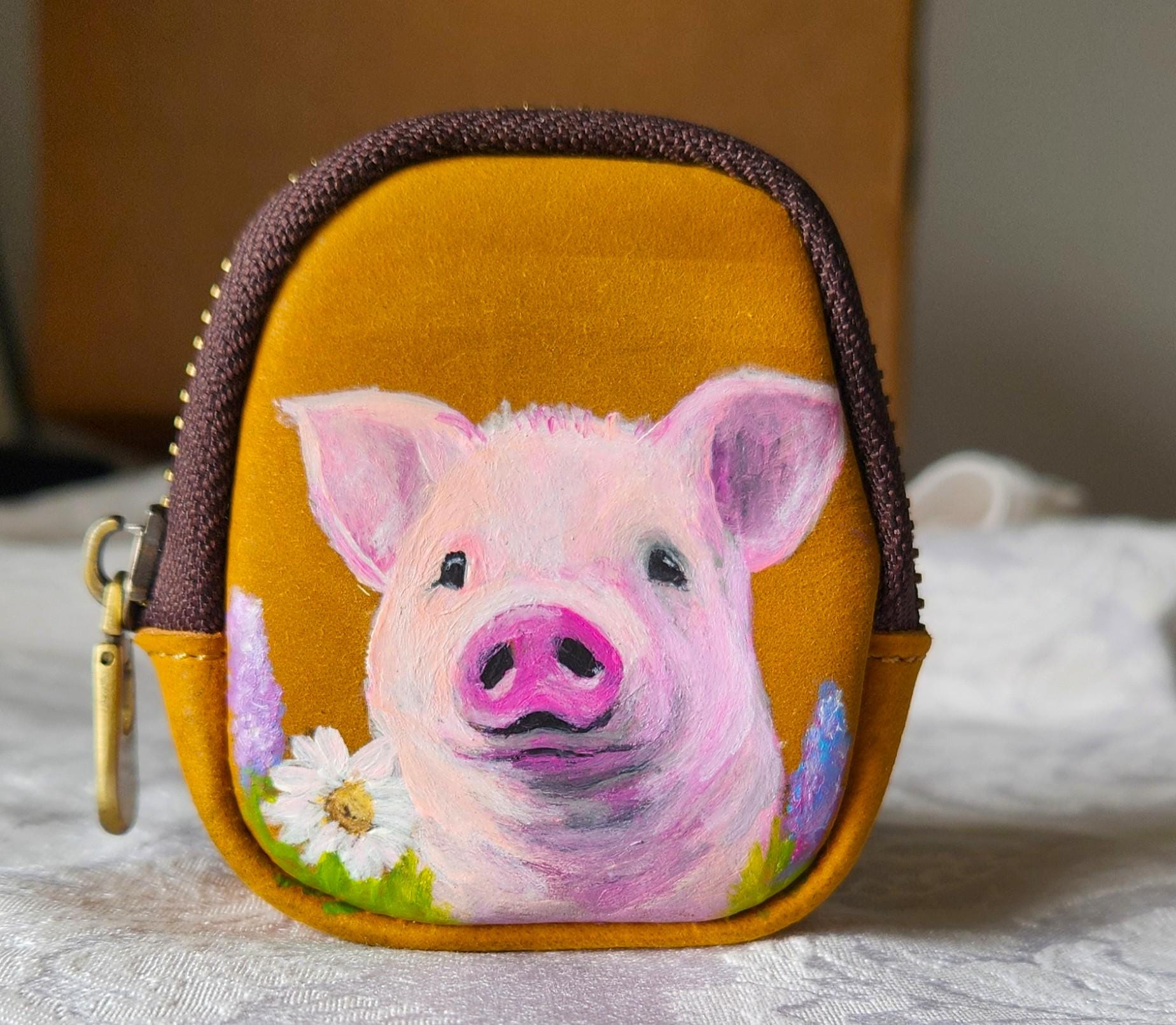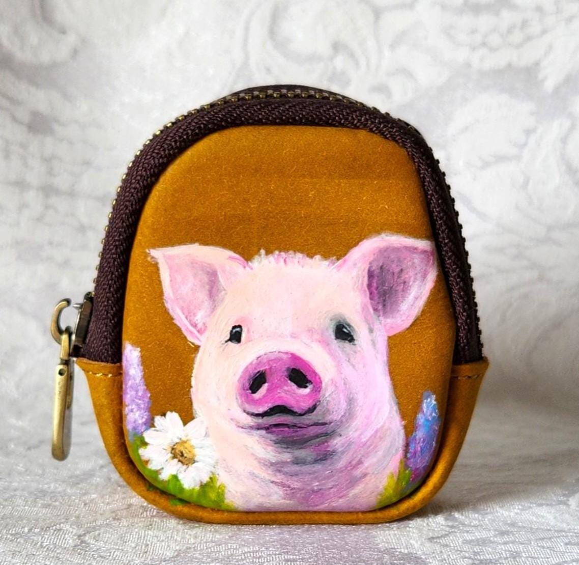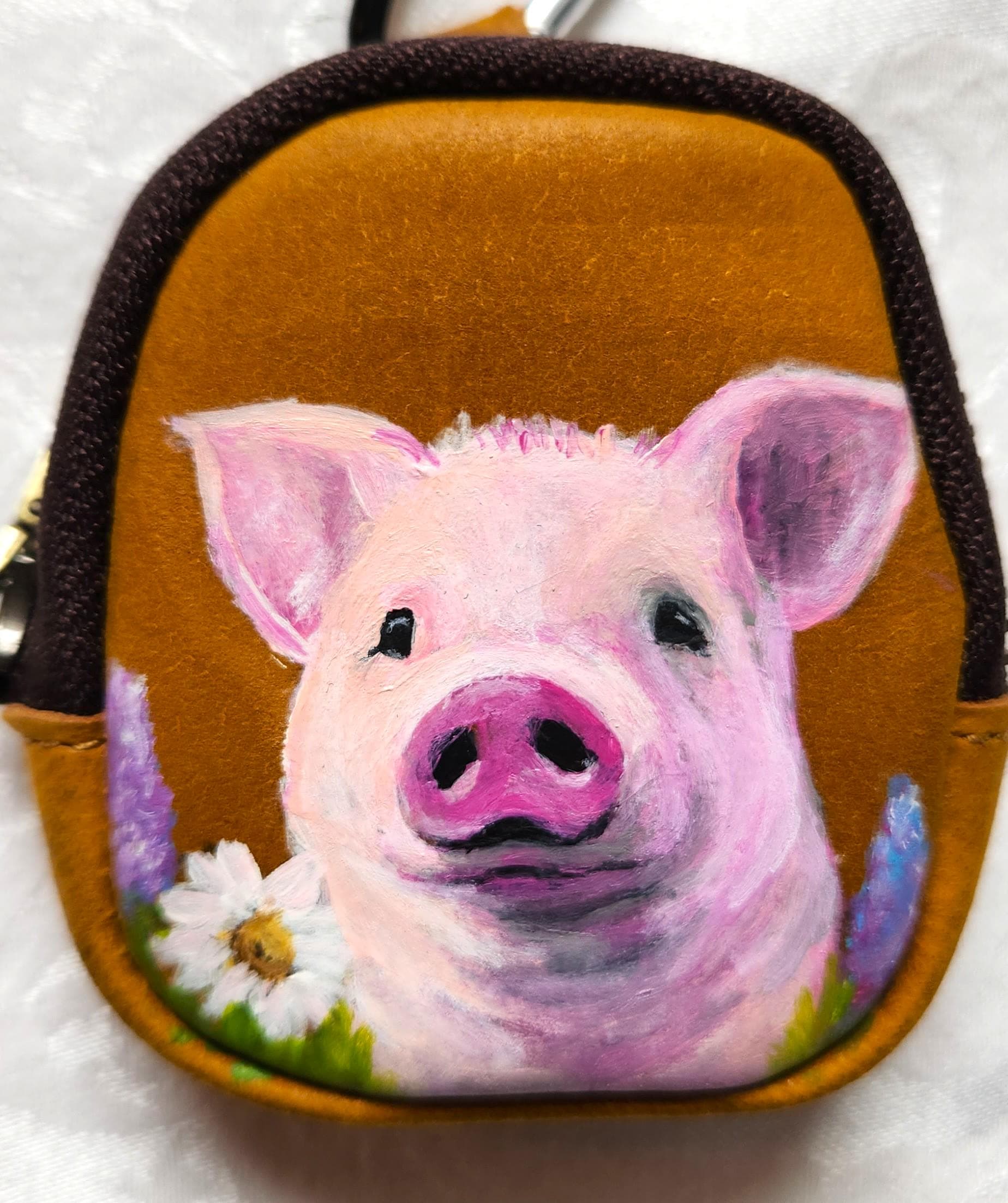 I've painted Rosie on this pouch. She's painted with leather acrylics and protected with several applications of topcoat for protection.