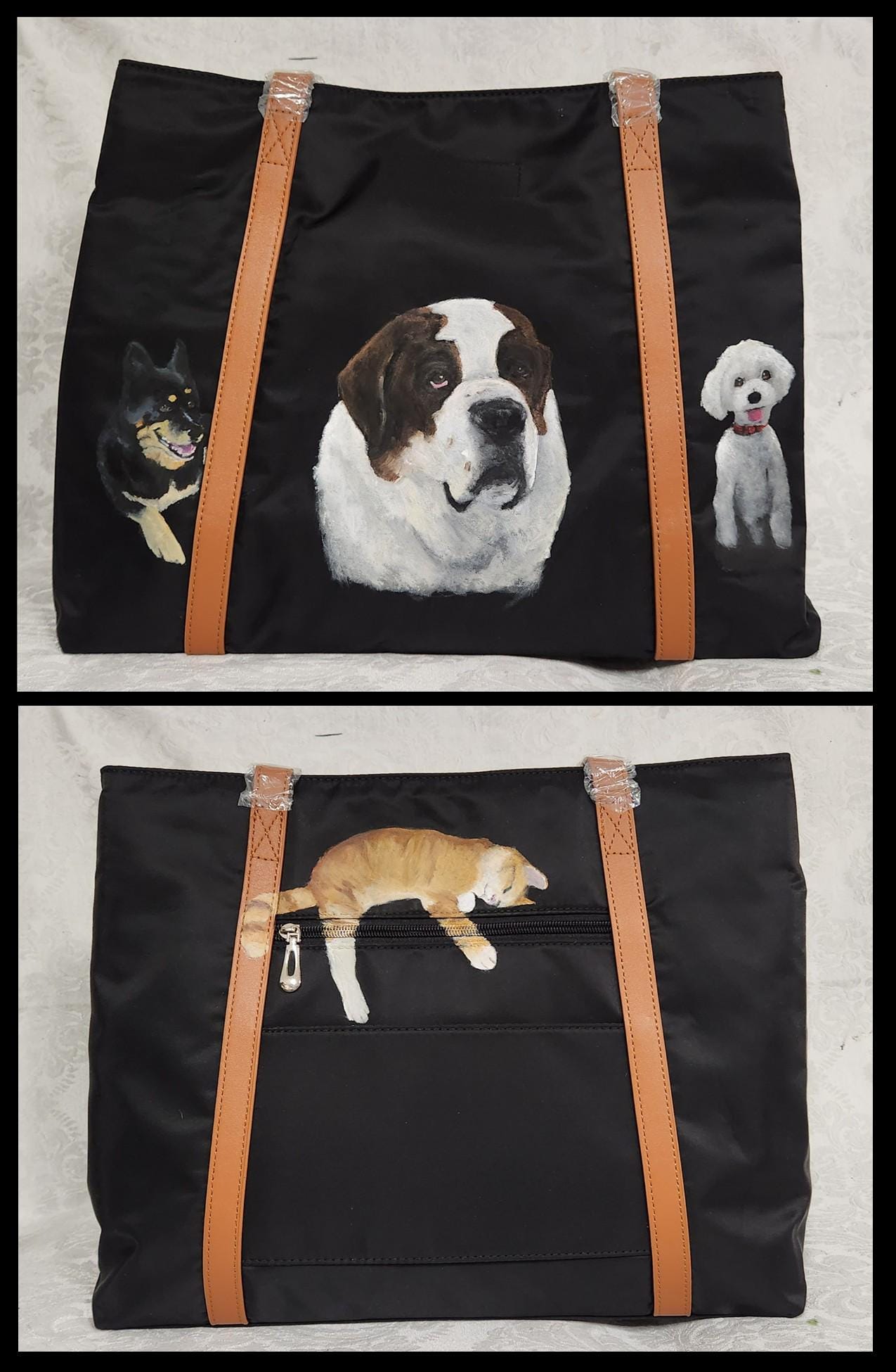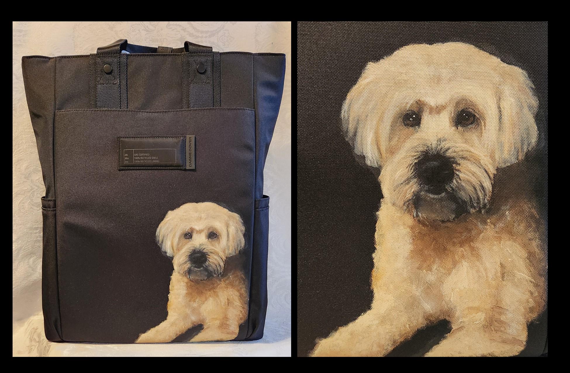Hand custom painting of your pet on a bag provided by Client.