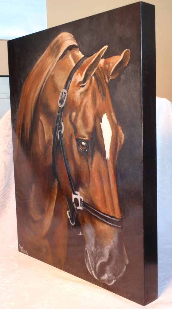 Images above are actual painting, back to show hardware and side profile. The last photo is the original image I used for reference.