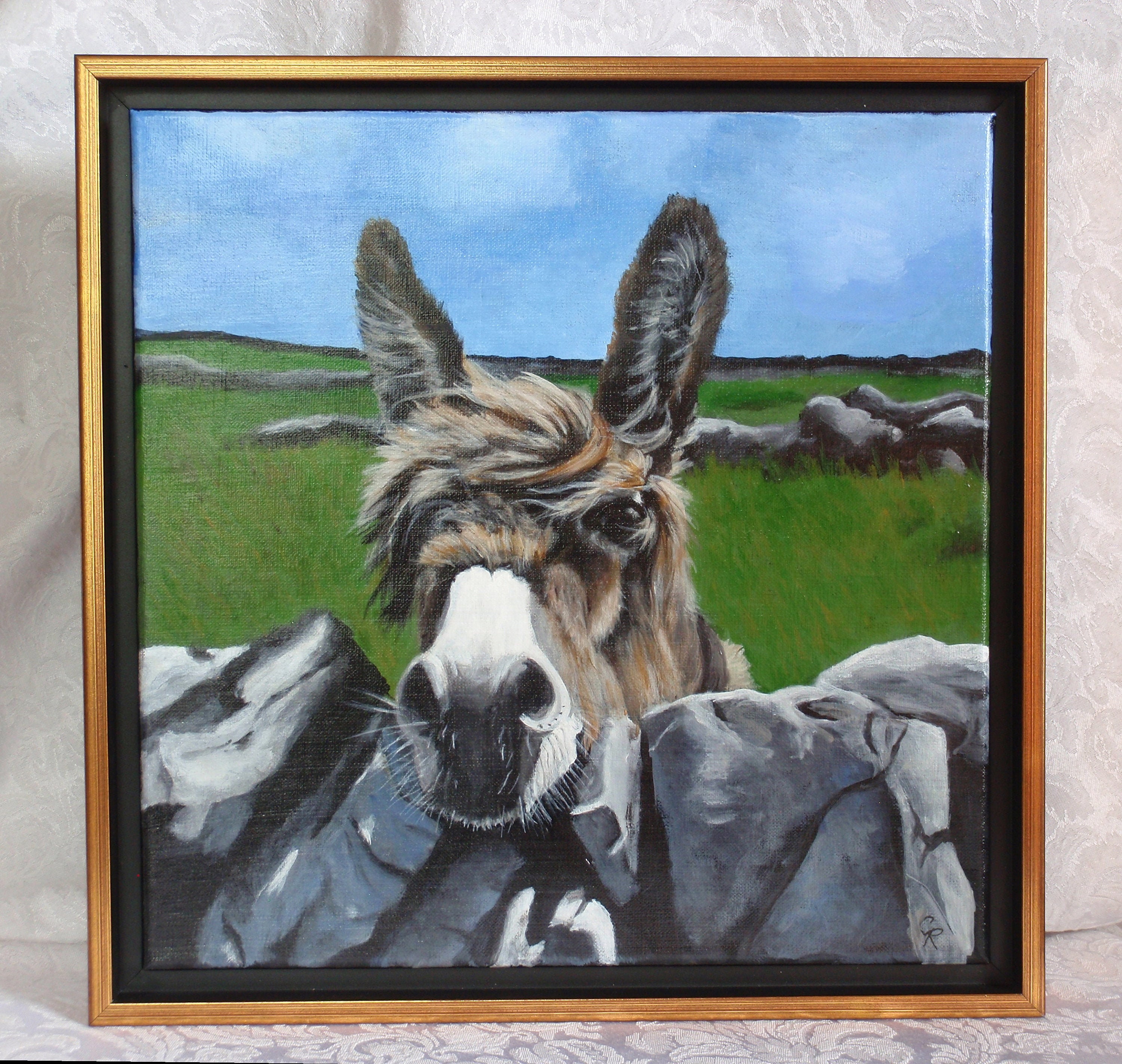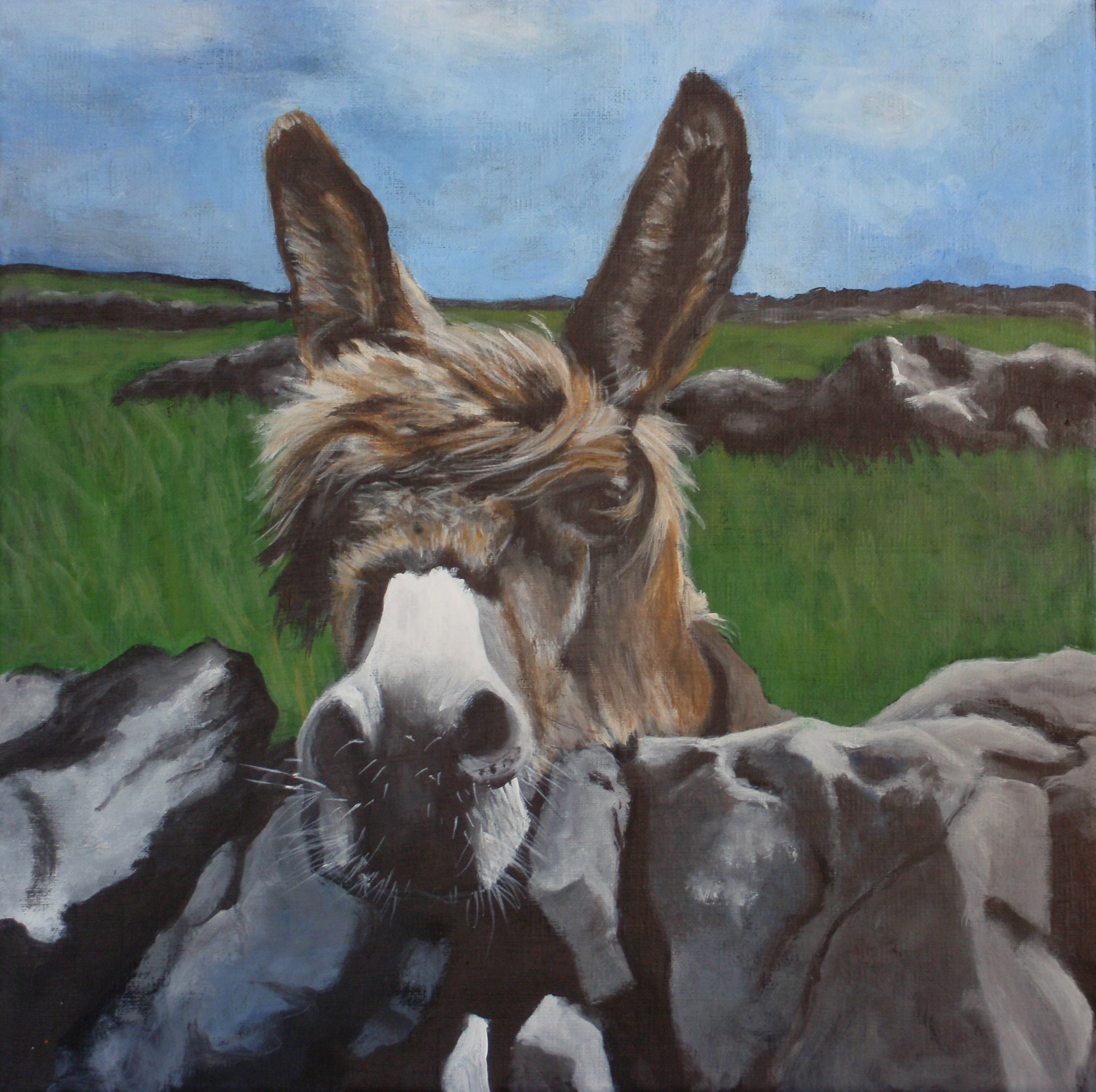 An original acrylic painting of 'Vera' an Irish Donkey on a 12" x 12" Linen canvas.